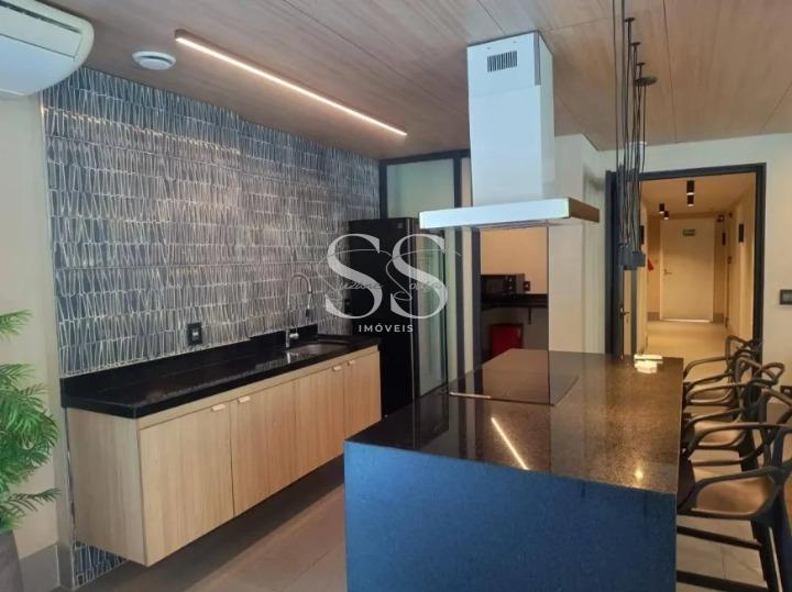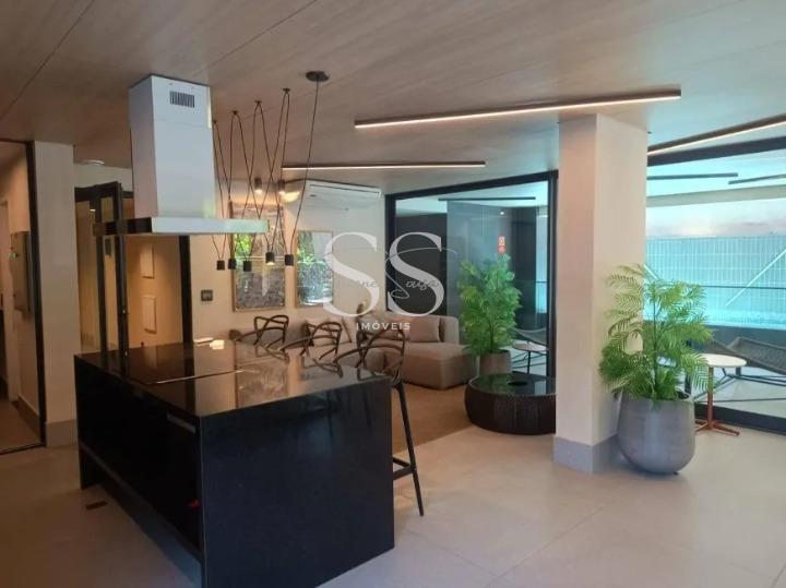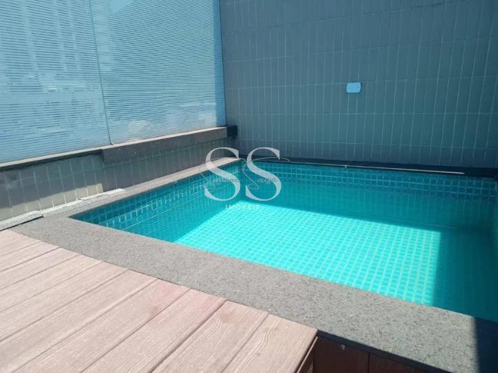 Cobertura duplex com sala ampla com banheiro janelões voltados para uma área externa com área gourmet e deck com piscina, proporcionando iluminação natural e ventilação. Na parte inferior 3 quartos sendo 1 suite com sacada rico em armários. A cozinha americana possui armários planejados, cooktop, coifa e forno.
